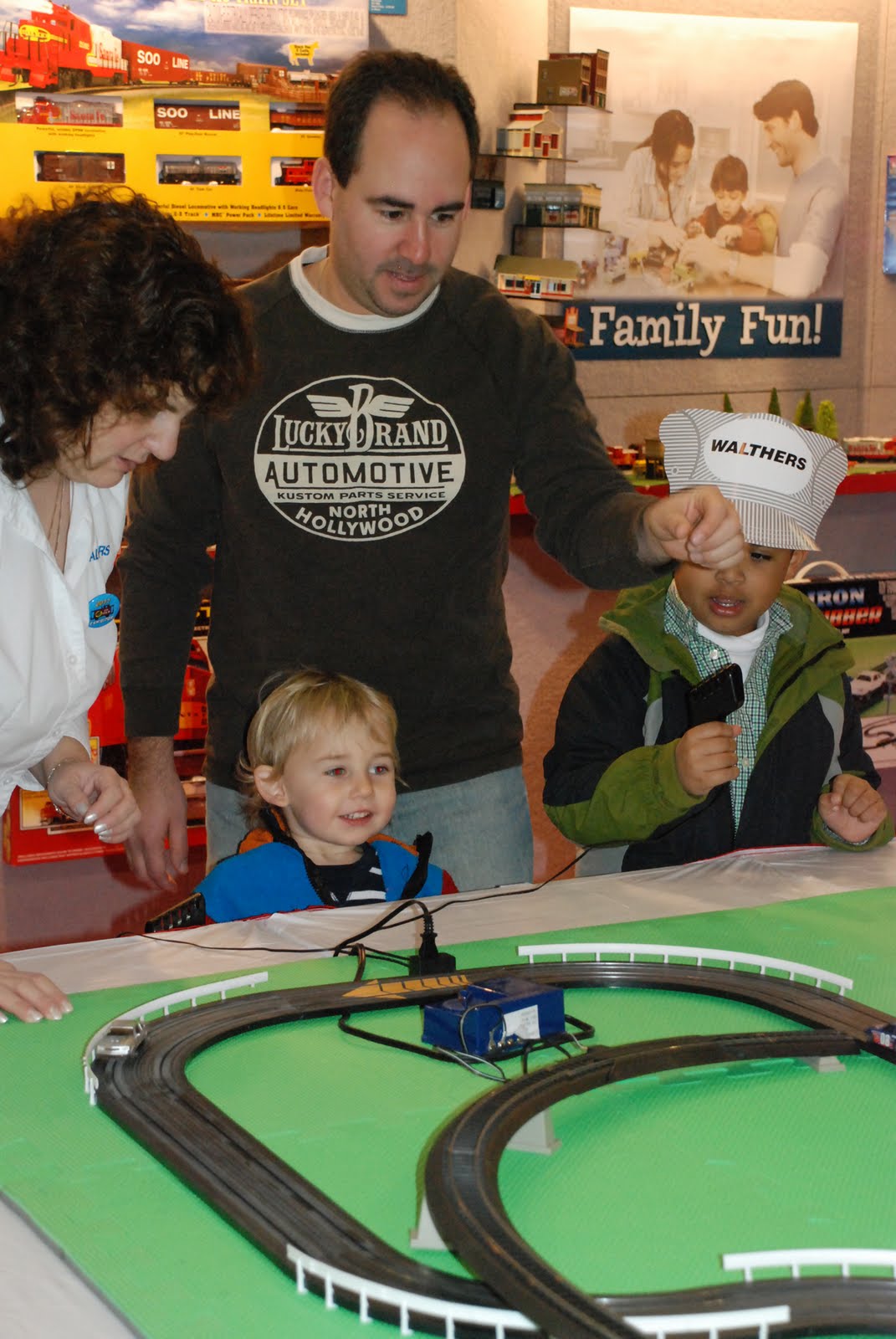 Weston made up for breaking this kid's tracks by "sharing" with him every single train he picked up. They hugged and made up-- but I wasn't quick enough with the camera to capture that moment
